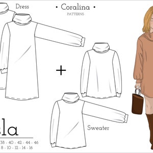 Turtleneck Sweater And Dress Pdf Sewing Pattern Sizes 4 16 Etsy
