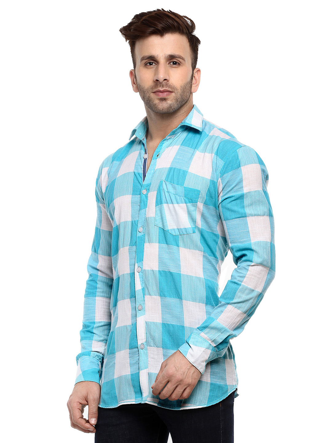 Hangup Men S Casual Blue Cotton Slim Checkered Lmshirtspcasualcheck8003 Walmart Com