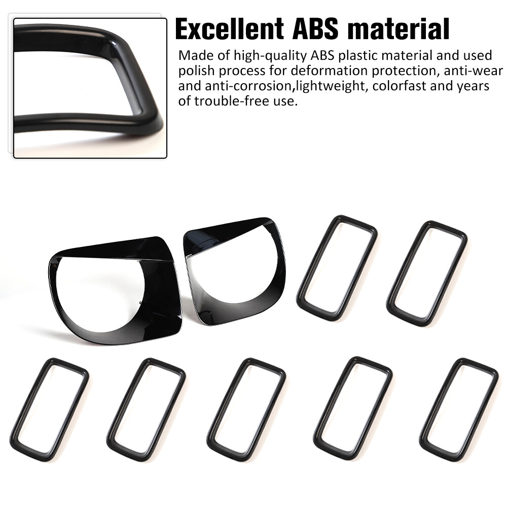 9x Front Grille Inserts Amp Headlight Decor Cover Trim For Jeep Renegade 2019 Black Ebay