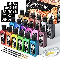 Fabric Paint Permanent For Clothes Shuttle Art 18 Colours Fabric Paints In Bottles 60ml 2oz With Brushes Palette Stencils Non Toxic Textile Paints For T Shirt Shoes Bag Jeans No Heating Need Amazon Co Uk Home
